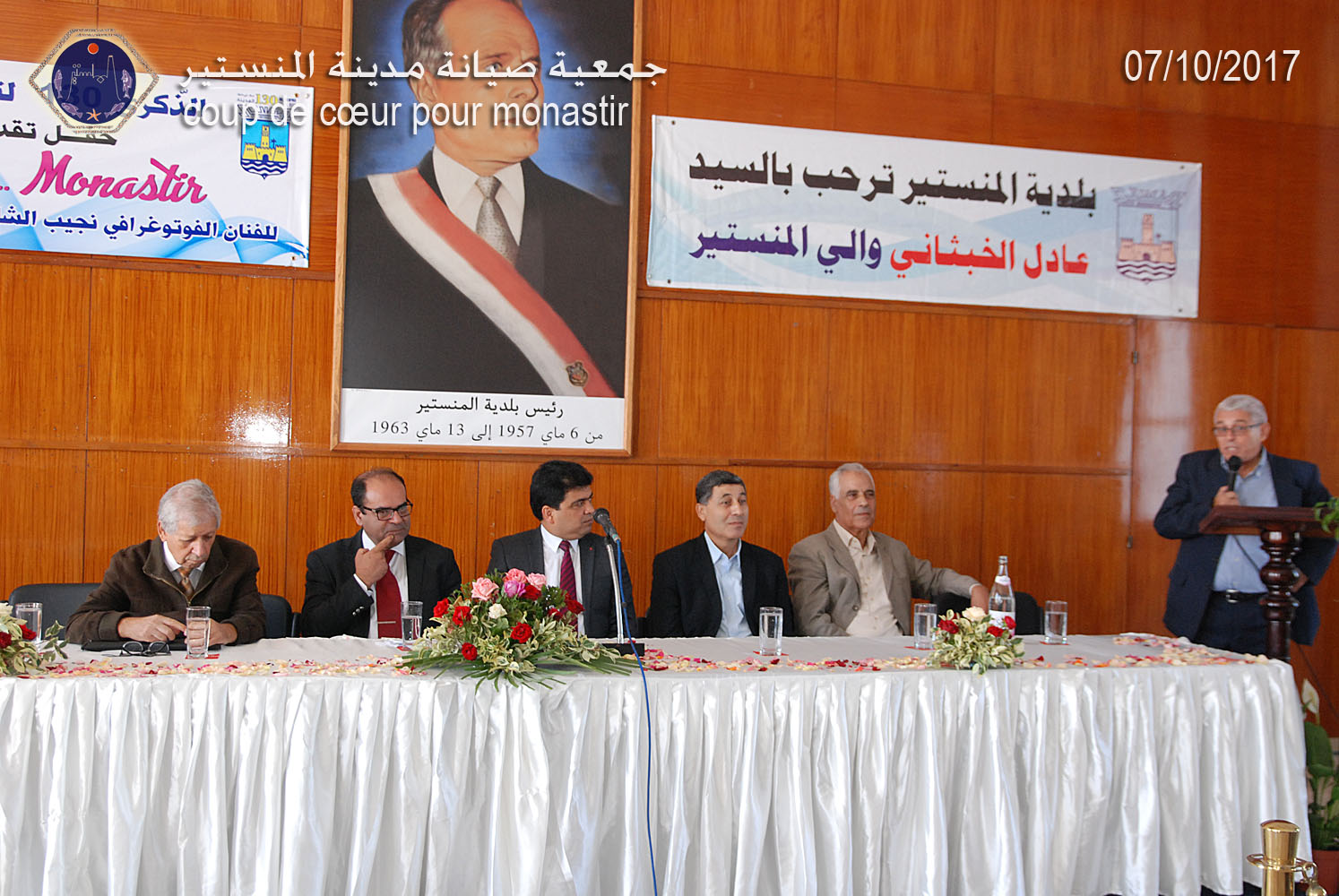 و قد حضر كل من السيد عادل الخبثاني والي المنستير و السيد البشير عطية كاتب عام الولاية و السيد نبيل حميدة معتمد المنستير و رئيس النيابة الخصوصية لبلدية المنستير و بحضور ثلة من الاطارات الجهوية و أهالي المنستير و ممثلي مكونات المجتمع المدني حيث اطلع السيد الوالي بقاعة المجاهد الأكبر الحبيب بورقيبة بقصر بلدية المنستير على جانب من المعرض الذي تم تنظيمه لتقديم الكتاب، كما أكد السيد نجيب الشك أنه انطلق في كتابته و تجميع الوثائق و الصور منذ عشرة سنوات و قد تطرق إلى مختلف الجوانب التاريخية و الثقافية و الاجتماعية و العادات و التقاليد لمدينة المنستير و لمواقعها الفريدة و الجميلة على غرار "الميدة" بشاطئ القراعية و الفلاز .